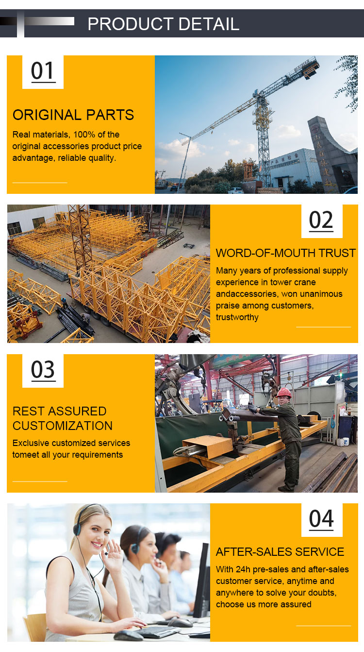 Shandong Baimai Construction Machinery Co., Ltd. offers customized tower crane standard sections designed to meet the unique needs of your construction projects. Our standard sections are crafted from premium materials and rigorously tested to withstand the toughest job site conditions, ensuring long-lasting performance. At Shandong Baimai, we provide competitive pricing without compromising on quality, making us a trusted partner for contractors and crane operators worldwide. Customization is at the heart of our service—colors, designs, and sizes can all be tailored to your specific requirements, ensuring seamless integration with your existing equipment.